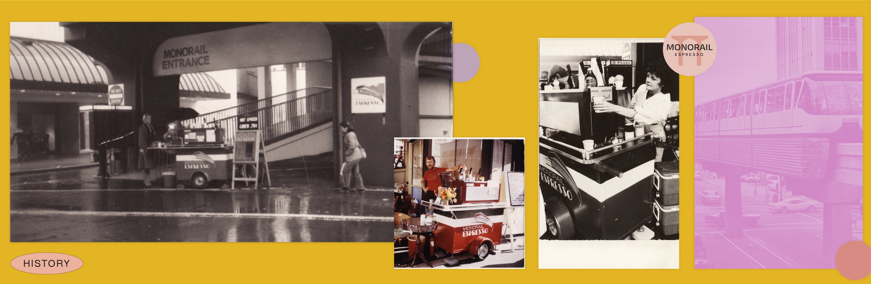 Monorail Espresso was founded in 1980 by Chuck and Susie Beek. Introducing the Italian cultural staple of espresso to the wet city streets of Seattle via the world’s first espresso cart. They put the cart to work at the downtown entrance of Seattle’s famed Monorail. Soon the cart was a mobile success, blowing people’s tired minds with rich and bold coffee. This kicked off the coffee cart craze in Seattle. By the mid 90’s there were hundreds of coffee carts downtown.
